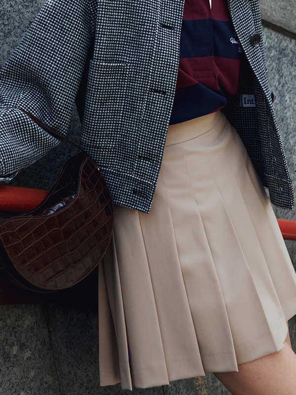 College style is the latest trend: the perfect blend of preppy elegance and a super-cool attitude. For a straight-A look, start with the basics: a pleated miniskirt paired with a striped polo.