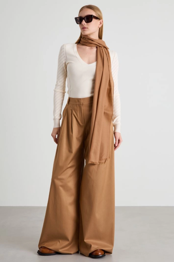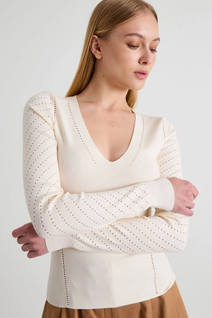 Fitted sweater in viscose blend, with a V-neck, long sleeves and openwork detail.