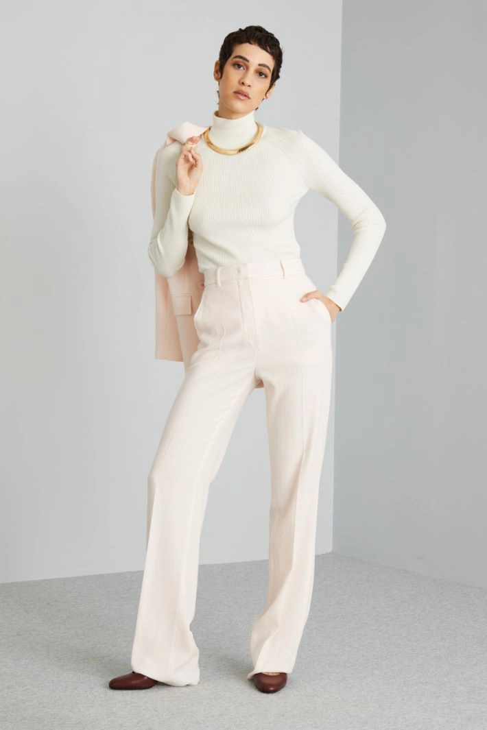 Slim-fit turtleneck in ribbed wool blend yarn, with high collar and long raglan sleeves.