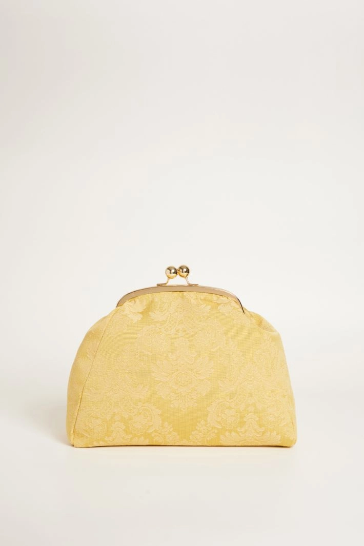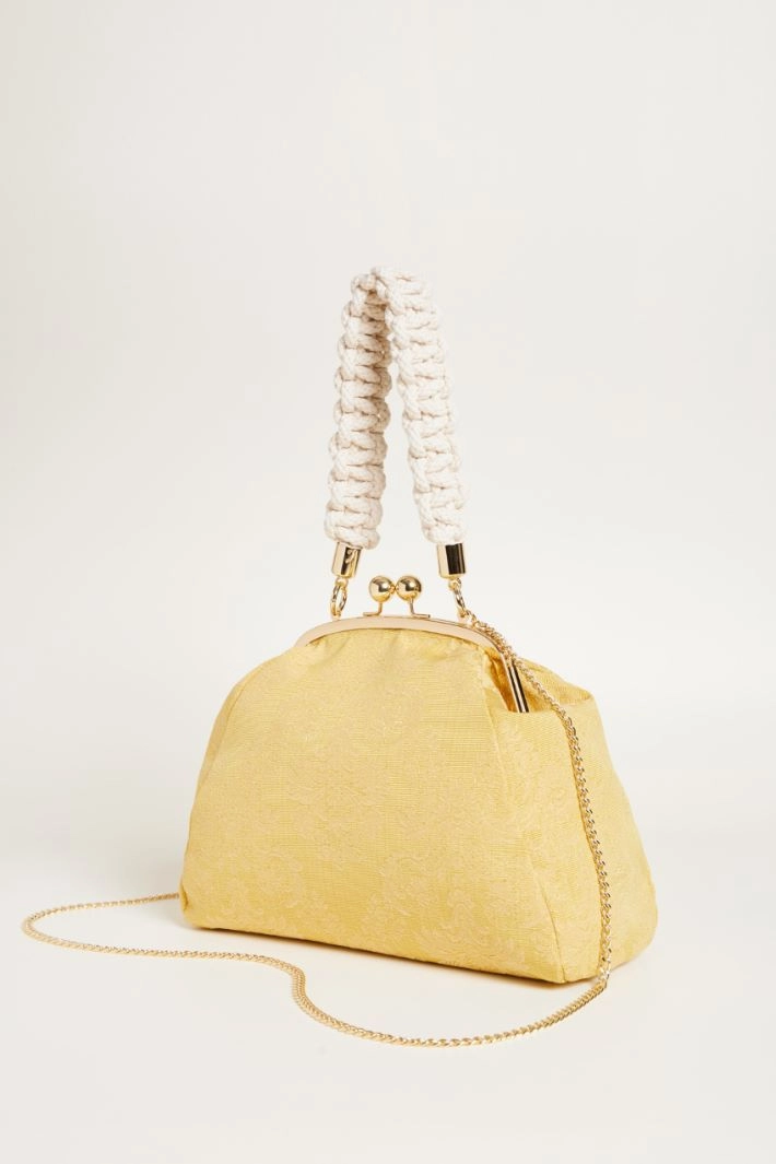 Clutch in a cotton-blend jacquard, featuring a woven handle and a chain shoulder strap, both removable with lobster clasps. Lined. Fastening with a metal ball clasp.