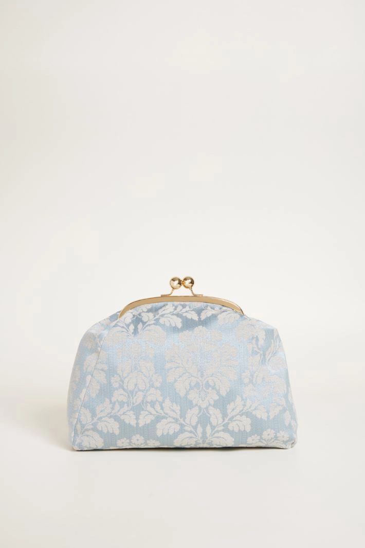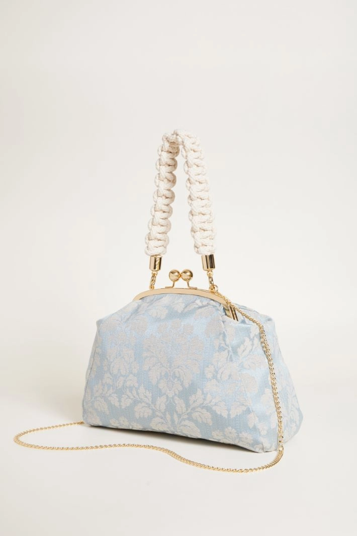 Clutch in a cotton-blend jacquard, featuring a woven handle and a chain shoulder strap, both removable with lobster clasps. Lined. Fastening with a metal ball clasp.