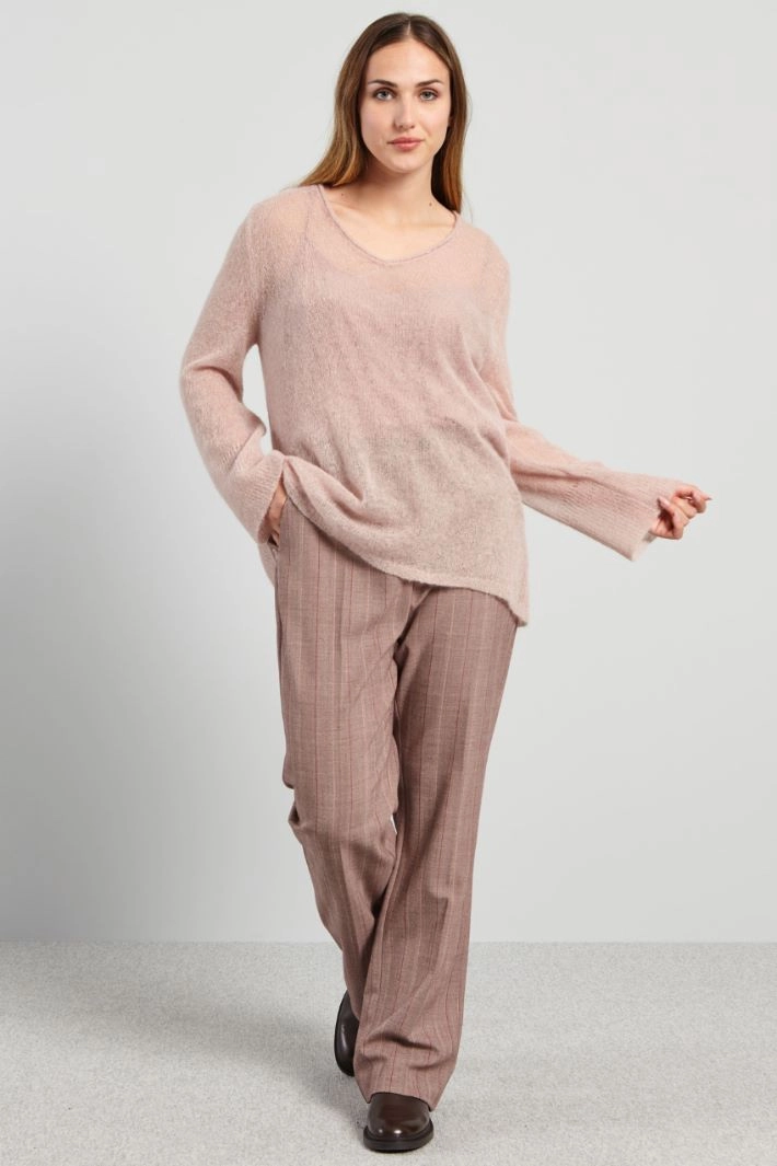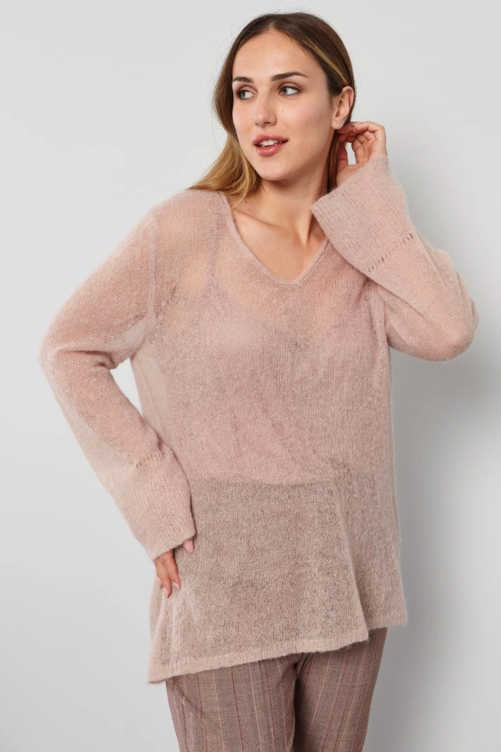 Regular-fit sweater in brushed mohair and alpaca blend yarn, with V-neck and long sleeves. Matching slip top.