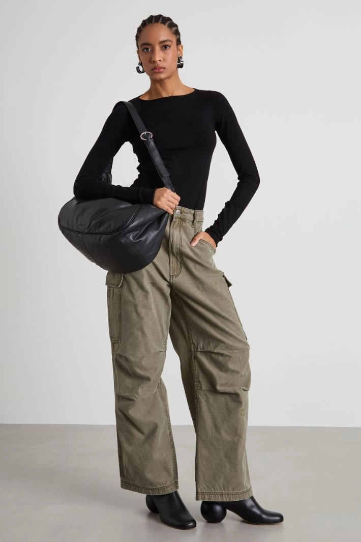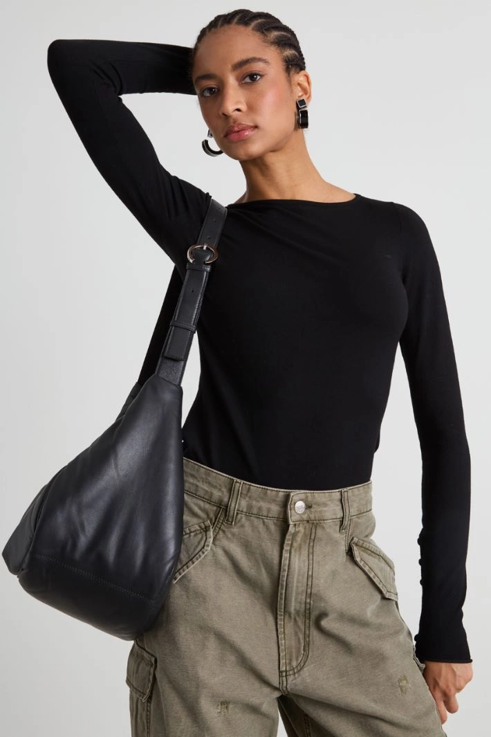 Fitted sweater in viscose blend yarn, with a boat neckline and long sleeves with buttons on the cuffs.