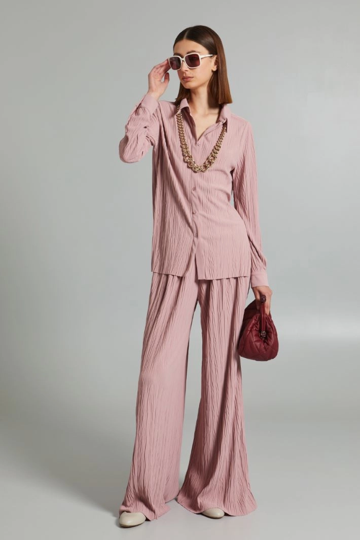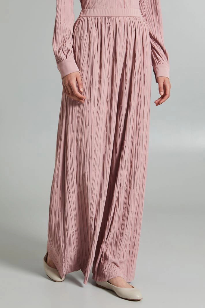 Wide-fit pleated jersey trousers