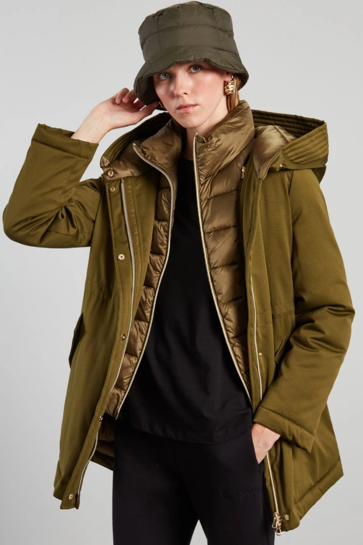Fisherman hat in padded and quilted technical fabric. Lined interior.