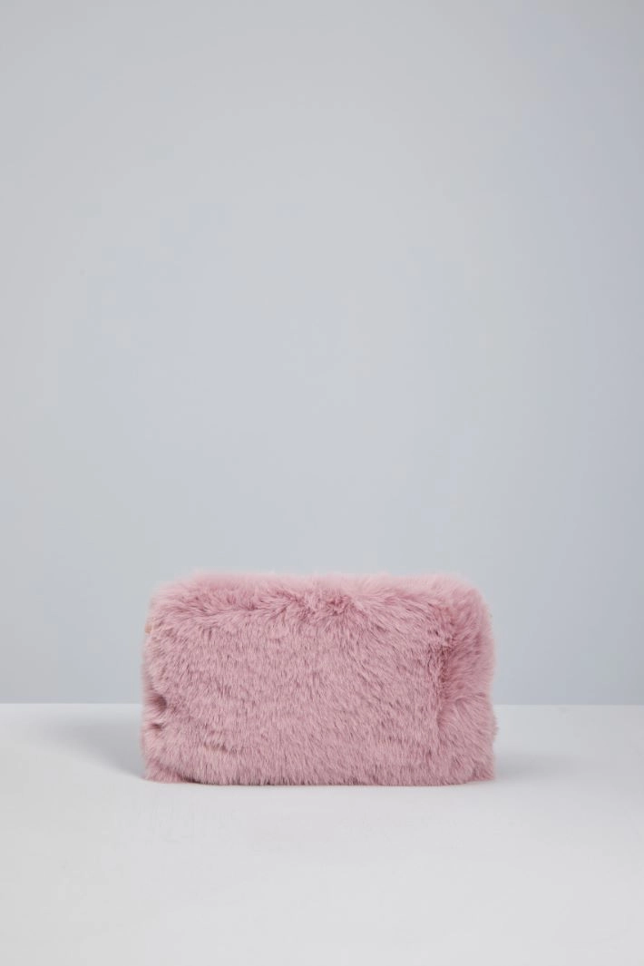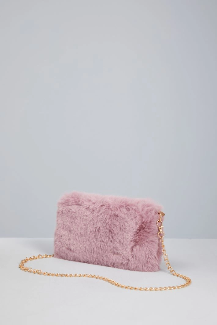 Small envelope bag in fur-effect fabric, with removable chain shoulder strap. Lined interior and zip closure.