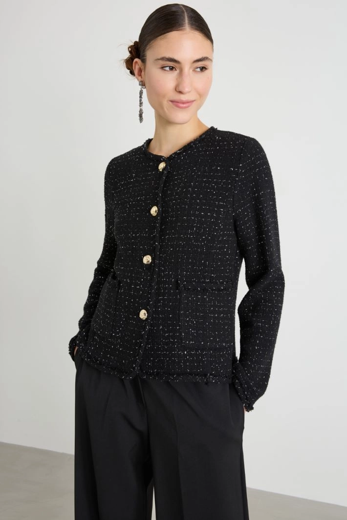 Straight-fit jacket in cotton-blend tweed, with a crew neck, long sleeves and patch pockets. Button fastening.