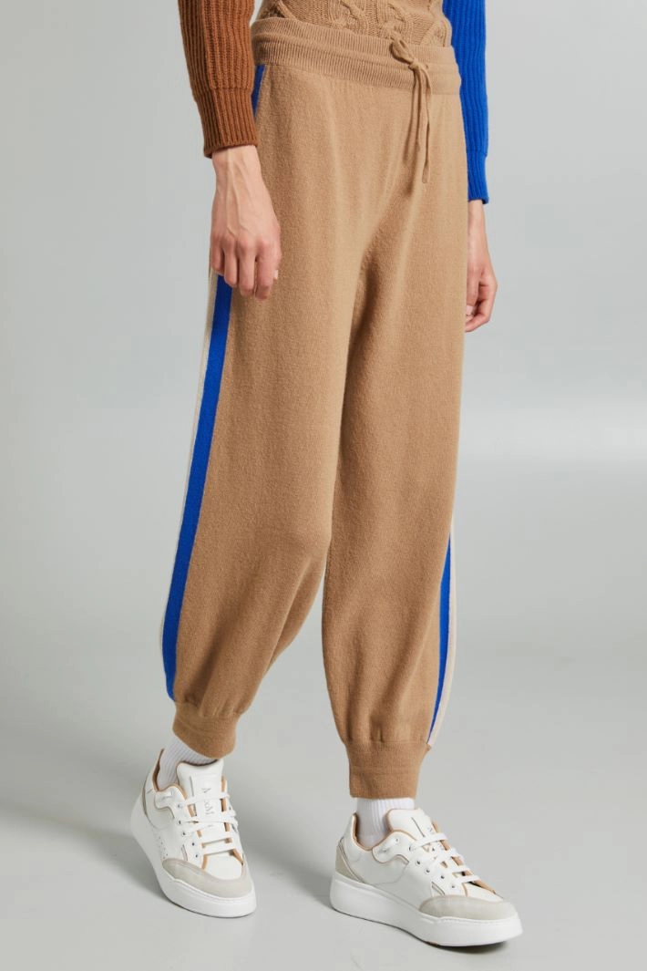 Jogger trousers in wool blend jersey, with drawstring, contrasting side bands, elastic insert at the waist and ankle.
