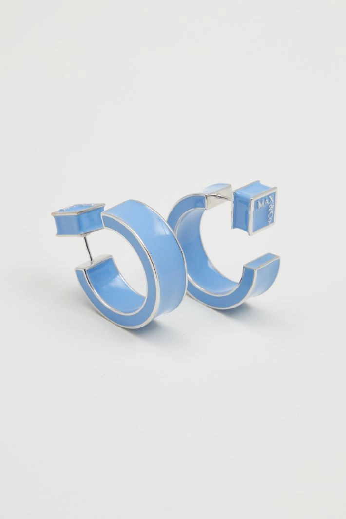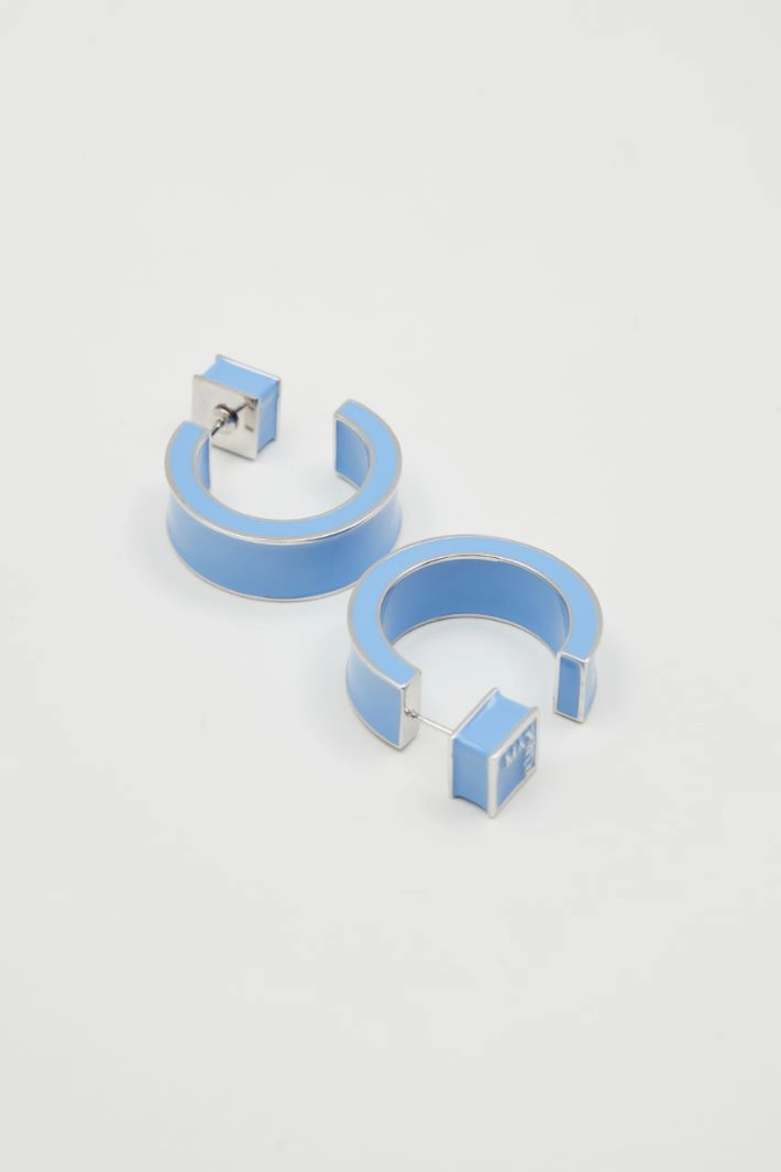 Earrings in enamelled metal, featuring a geometric design. Stud fastening.
