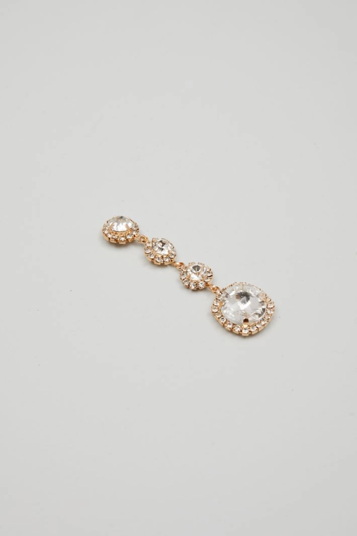 Metal and resin earrings with set rhinestones of different sizes and butterfly closure on the back.