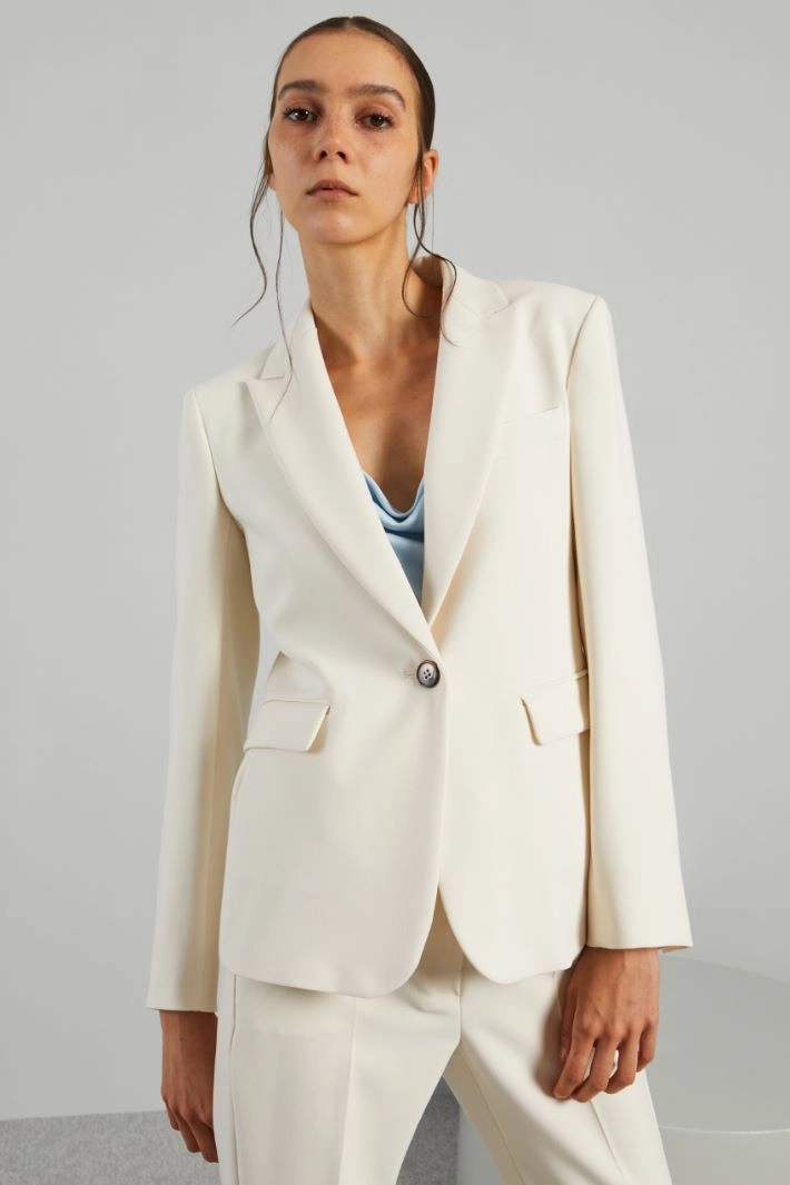 Slim-fit blazer in stretch viscose blend canvas, with lapel collar, long sleeves with buttons at the bottom, chest pocket and double welt pockets with flap on the sides, central vent on the back and dot finishing. Single-breasted button fastening. Lined.